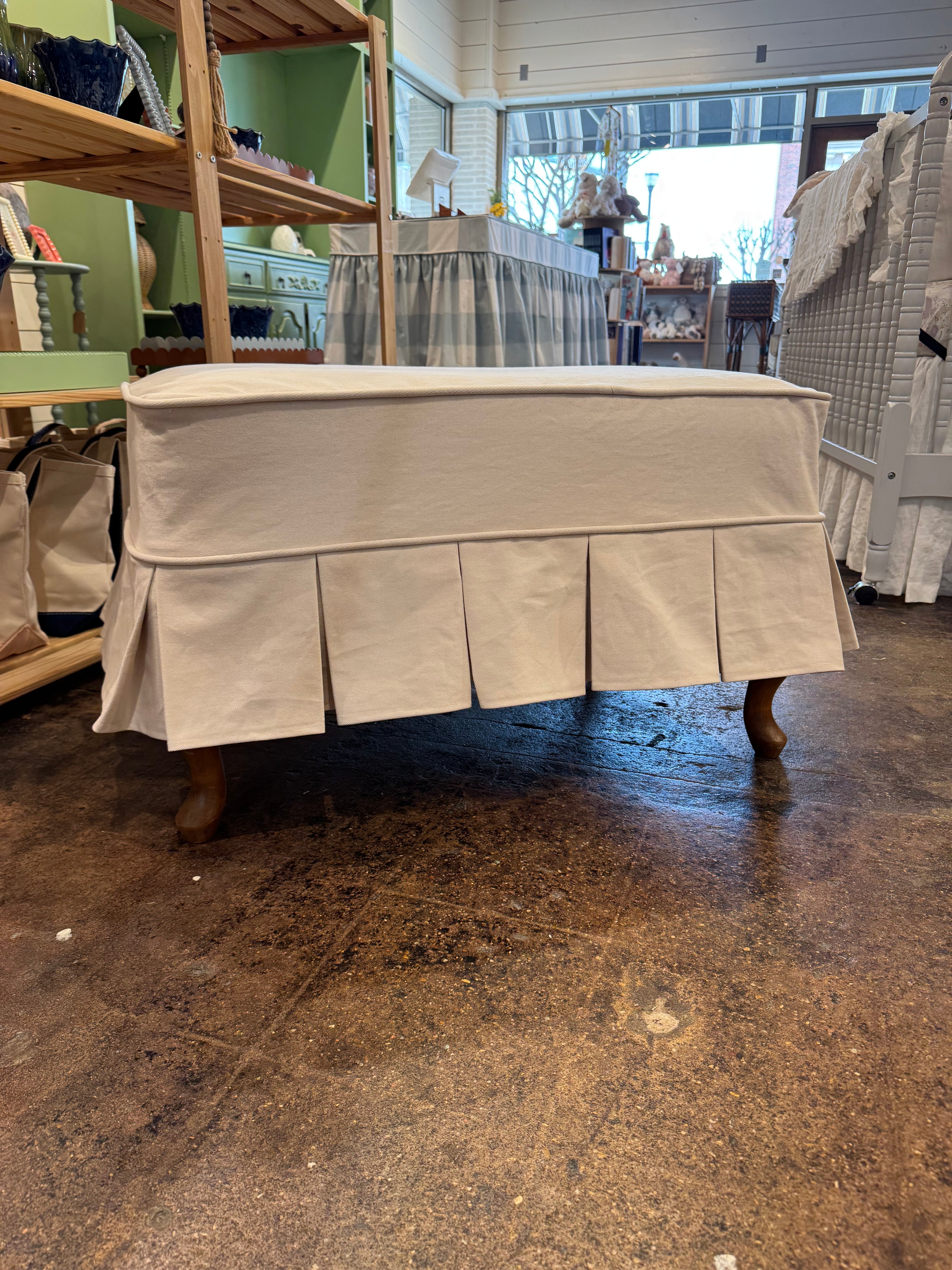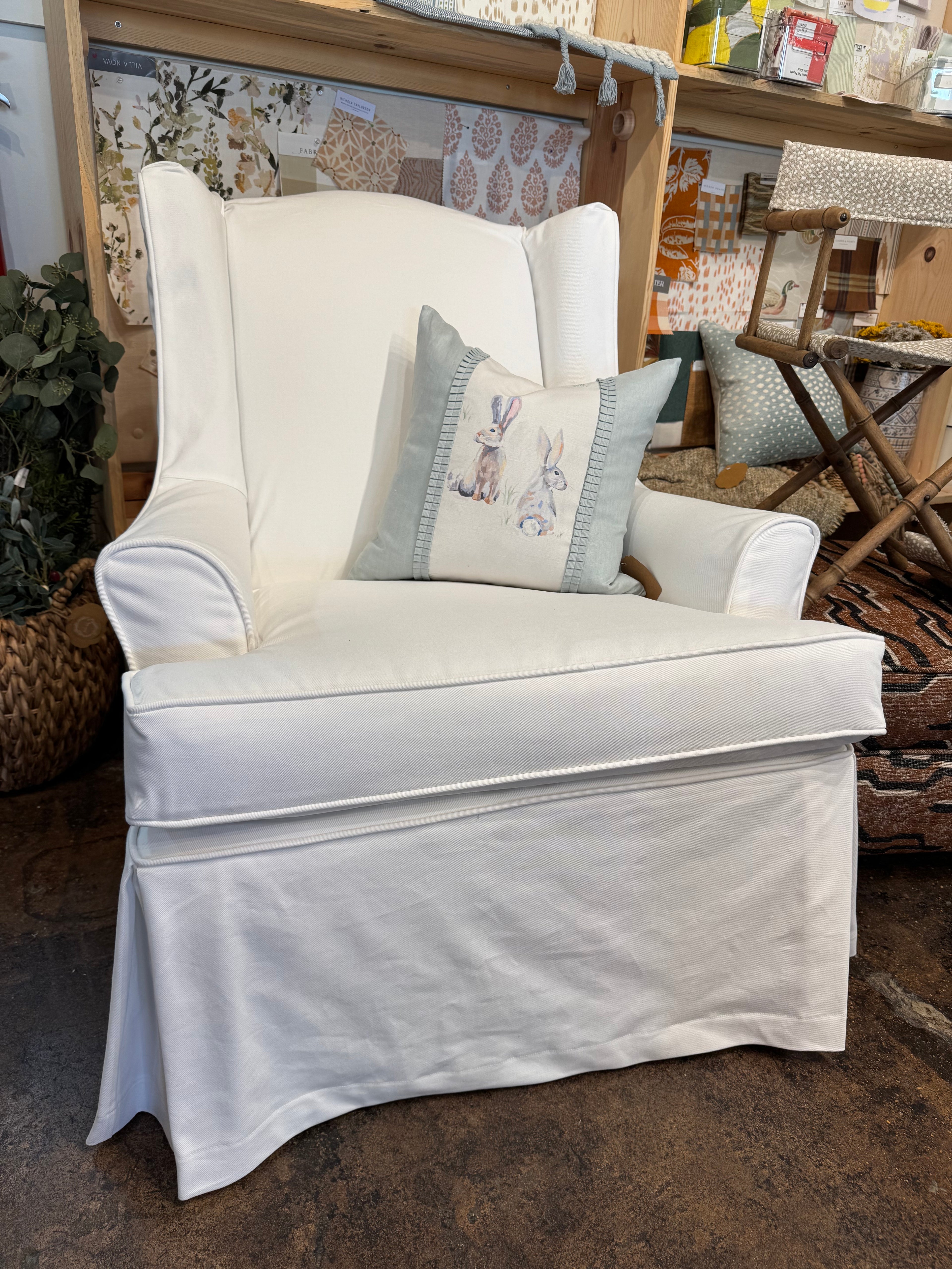 We offer custom slip cover and upholstery services in store.